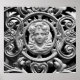 Antique Storm Door Wrought Iron Panel Against Glass With Sculpted Bust Portrait of Young Woman in Ornate Vine and Heart decor in Black and White