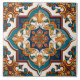 Ornate Mediterranean Teal Blue Brown Ceramic Tile