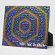 A copper, blue and gold 3D fractal image of a Magen David (Star of David) resembling an intricately-textured metal panel. Customise by adding your own text.