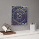 A copper, blue and gold 3D fractal image of a Magen David (Star of David) resembling an intricately-textured metal panel. Customise by adding your own text.