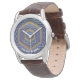 The watch looks really great! Very sharp and well done. The leather band is really nice, though for a man's watch I think it should be longer. Unfortunately, it isn't big enough for my husband's wrist but I will get a replacement because he is very excited to wear it!