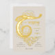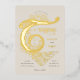 This elegant wedding invitation features a large, ornate gold foil “T,” which serves as the leading letter for the phrase “The Wedding of,” creating a grand and sophisticated introduction to the wedding details. The intricate gold foil scrollwork surrounding the text adds a luxurious feel to the muted sage green background, while the classic serif typography enhances the formal aesthetic. The back of the card continues the minimalist elegance with a delicate monogram-style design. Ideal for formal and upscale wedding celebrations, this invitation combines timeless design elements with contemporary sophistication. The harmonious blend of sage green, gold foil, and cream tones makes it perfect for couples seeking a refined and stylish invitation.