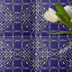 Exquisite ceramic tile design showcases a flawlessly crafted pattern adorned with imitation gold embellishments, set against a rich navy blue backdrop.
