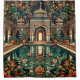 Immerse yourself in the elegance of this stunning artwork featuring an ornate architectural structure, with indoor pool, inside an opulent a palace. The design showcases intricate patterns and decorative columns, with a central arched doorway leading into the building. Large potted plants flank the entrance, adding to the grandeur. The foreground features a reflective body of water that mirrors the architecture and flora, creating a captivating and serene scene. The rich colour palette of deep greens, blues, reds, and earth tones enhances the detailed and vibrant appearance, making this artwork perfect for adding a touch of sophistication to any space.