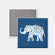 Ethnic art square magnet with decorative henna tattoo style elephant on dark blue background. Option to customise background colour.