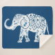Ornate Patterned Blue Elephant Sherpa Blanket