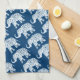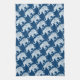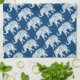 Decorative ethnic kitchen towel decorated with henna tattoo style elephants in repeat pattern on midnight blue background.