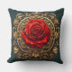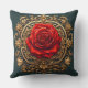 Ornate Red Rose With Gold Baroque Frame Cushion