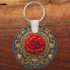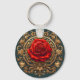 Ornate Red Rose With Gold Baroque Frame Key Ring