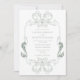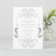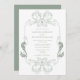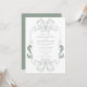 Ornate Sage Green Floral Line Art Monogram Wedding Invitation
