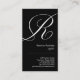 The letter "R" rendered in an ornate script bleeds off this black business card making a stylish, versatile look for a hairdresser, image consultant, life coach, or stylist among many others. Don't like the black background? Choose the "Customise It" button option and change the background colour as desired. Available in alternate monograms.