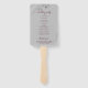 These beautiful hand held fans are designed to serve as both cooling for your guests, and a wedding program. The elegant design features burgundy script calligraphy on a grey background with ornate silver faux foil frills in the corners. There is space to list the ceremony order as well as the wedding party and a short thank you note. Wonderful memento of your special day.
