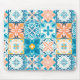 Ornate tiles in blue and orange mouse pad