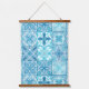 Ornate tiles in blue and white hanging tapestry
