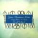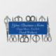 A background of vintage scissors under a blue information rectangle gives these cards a fun retro look.
