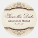A lovely vintage floral design on these elegantly ornate save the date stickers. Customisable with your name and wedding date.