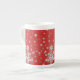 Drink your tea from this china cup (10 oz) featuring my photograph of a white Christmas tree ornament and added digital art snowflakes to the background. The design is on a transparent background so you can click customise to select a background colour other than red.