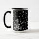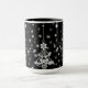 Ornate White Christmas Tree Snowflakes on Black Mug