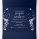 Ornate White Floral Swirls on Navy Blue Wedding Tri-Fold Invitation