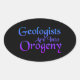 Geologists Are Into Orogeny - geology humour sticker in black with blue and purple script lettering.