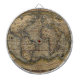 Vintage dartboard with 1570 Ortelius World Map from the Theatrum Orbis Terrarum, adapted and converted into a sphere to fix better with the product. This old and retro map besides being great for decoration can help the travel lovers to pick their next destination with a dart.