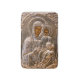 A ornate brass face, painted Madonna, and her child on an old Russian icon.