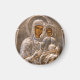 Jesus Christ and his mother Mary on old Russian icon. Silver look. Photography.