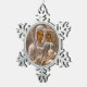 Jesus Christ and his mother Mary on old Russian icon. Silver look. Photography.