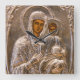 Jesus Christ and his mother Mary on old Russian icon. Silver look. Photography.