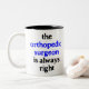orthopaedic surgeon is always right Two-Tone coffee mug