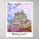 Osaka Castle Japan Travel Watercolor Hand Drawn Poster