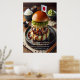 Savour the "oishii" (delicious) flavours of Osaka with this dreamlike Japanese Teriyaki Burger. A succulent wagyu beef patty, glazed with a glistening teriyaki sauce, is topped with a creamy wasabi mayo, crisp shredded cabbage, and all nestled within a soft, toasted rice-flour bun. A small Japanese flag adds a touch of authenticity, while chopsticks rest beside the plate, completing this Japanese culinary dream.