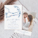 Set the tone for your Osterville wedding with this modern navy blue Save the Date featuring an elegant map of Cape Cod on the front and a customisable photo on the back. Perfect for weddings at Oyster Harbours Club, The Wianno Club, or Armstrong-Kelley Park, this design pairs style with convenience, offering free envelope addressing. Announce your special day in effortless coastal charm! Artwork by Coastal Map Designs.