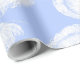 Lovely, delicate ostrich feathers floating against a periwinkle blue background