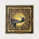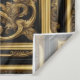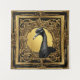 A striking image featuring a black ostrich set against a luxurious gold and black ornamental frame, evoking a sense of opulence and exoticism. The contrast between the sleek, black feathers of the ostrich and the intricate, elegant details of the frame creates a visually captivating composition.