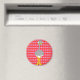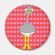 Magnet with cartoon ostrich illustration over pink polka dots background