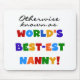 Best Nanny T-shirts, hoodies, mugs, cards, stickers, nanny keepsakes, magnets, and other nanny apparel and gifts with text that reads "Otherwise known as World's Best-est Nanny!". If you call your grandma "nanny" these are for her!