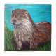 Otter by a River Painting Ceramic Tile