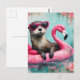 Otter Floating on a Pink Flamingo Funny Collage Postcard