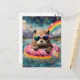 Am adorable otter in a doughnut on a fantasy float trip with mountains and a rainbow in the background