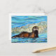 Otter in the Waves 2 Painting Postcard