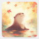 Otter in Water with Falling Autumn Maple Leaves Square Sticker