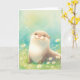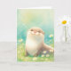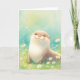 An adorable otter stands amidst a field of daisies, looking up with a peaceful and contented expression. The soft blue and green hues of the background, combined with the bright flowers and gentle bubbles, create a serene and joyful atmosphere. This charming image perfectly captures the playful yet peaceful nature of otters, making it ideal for nature lovers and anyone who enjoys the simple beauty of wildlife.