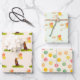 Gender neutral pastel otter pattern with this adorable wrapping paper sheet set. Gift wrap has otters and balloons on peach background, balloons and clouds on green background, and polka dots on yellow background.