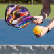 The paddle looked amazing when I received it but upon using it the black ( paint) came off and the paddle no looks like it has measles. It’s all pitted with white spots where I have been hitting the ball. .