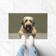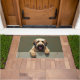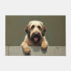 The earthy moss green background adds a natural and grounded feel, perfect for welcoming entryways. Designed with extra space at the top and bottom, it allows easy personalisation with names, welcome messages, or custom text—making it ideal for unique dog-themed doormats and thoughtful gifts.