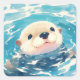 This playful otter sticker captures a sweet little face floating in peaceful blue water, eyes wide and curious, with just the tiniest hint of a smile. Its soft watercolor style adds a gentle charm that animal lovers and ocean enthusiasts alike will appreciate.