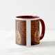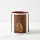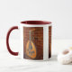 This mug features the amazing oud. It is a pear shaped stringed musical instrument commonly used in North African and Middle Eastern music. The modern oud and the European lute are both quite similar. The oud can be identified by its lack of frets and smaller neck. It is decorated with complex, intricate designs in black, silver and white which contrast beautifully with the gorgeous golden wood.