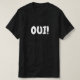 A black t-shirt with text only design with a French word, Oui!, that can be translate to: Yes!. You can customise this t-shirt to change it fonts type, colour and change it to give it you own unique look.