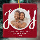 This keepsake First Christmas As Mr & Mrs photo ornament is decorated with the word JOY in stylish script typography on a red background. Easily customisable.